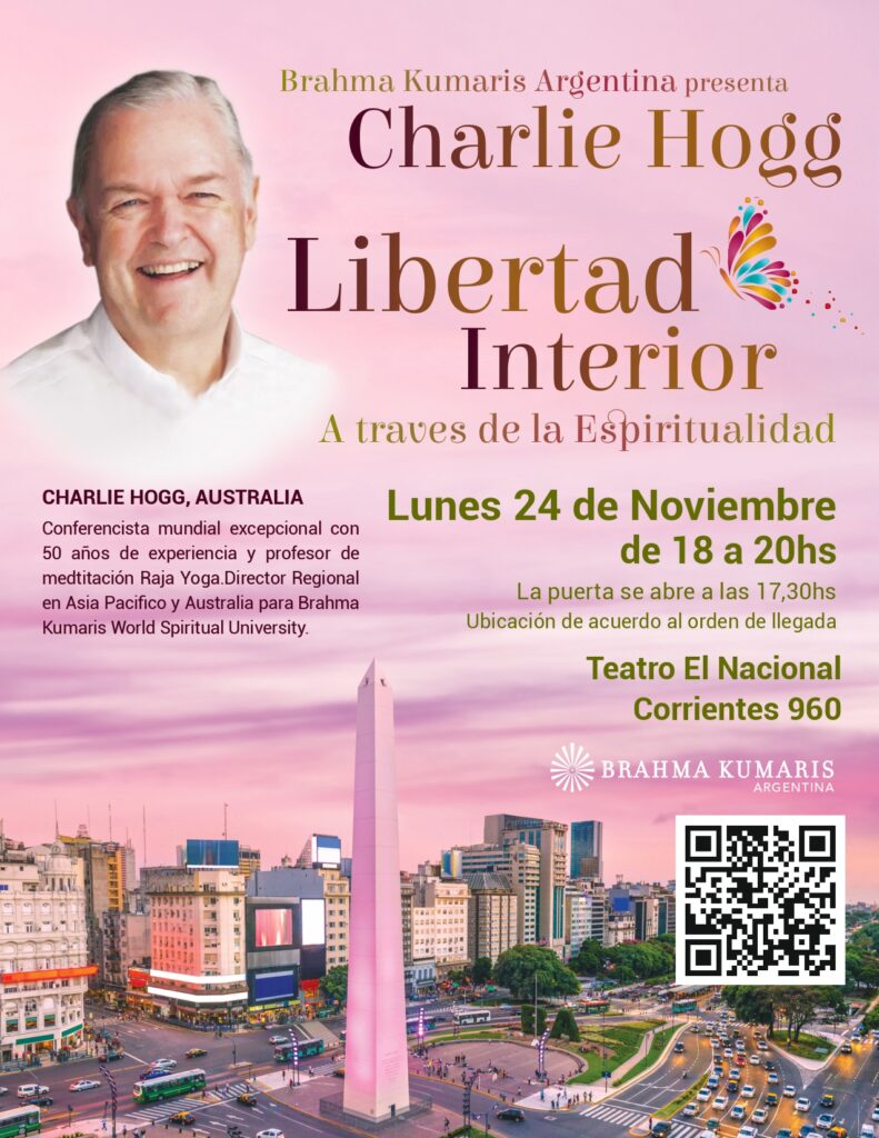 Charlie Hogg, reconocido conferencista internacional y referente de Brahma Kumaris, llega a Buenos Aires para brindar una charla inspiradora: “Libertad interior a través de la espiritualidad”.